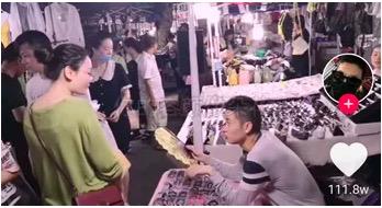 另一个,是我关注的一个抖音大号,叫陈磊,在杭州某个夜市卖头绳,一边卖头绳,一边撩小姐姐。通过自己的叫卖,生意做得风生水起。当然,他是以线下为内容素材,主要线上来盈利。